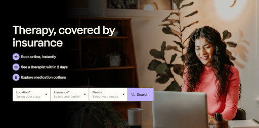Grow Therapy is an online therapy platform designed to connect people with licensed therapists within their region and insurance network. The platform is easy to use, generating a list of providers and allowing you to make an appointment directly through the platform. Users can access additional filters, such as specialty, gender, and identity to ensure they find the right therapist.