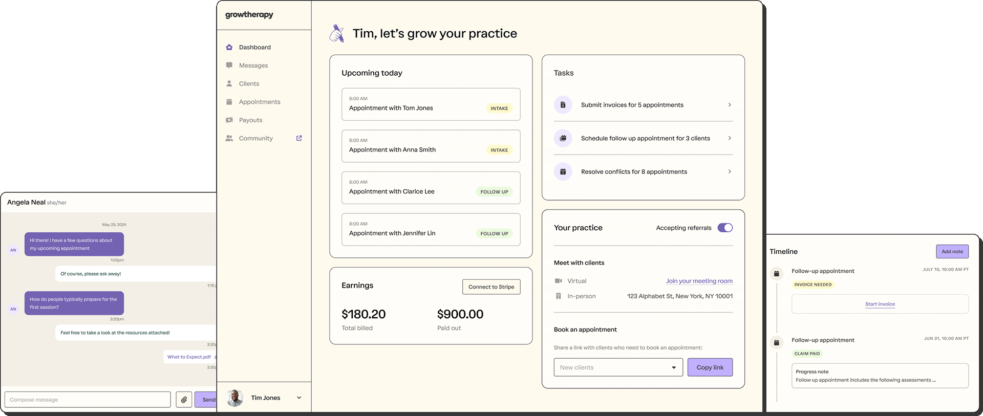 Grow does not offer an office space, but if you have your own you can use all the features of the Provider Portal to service your in-person clients too.