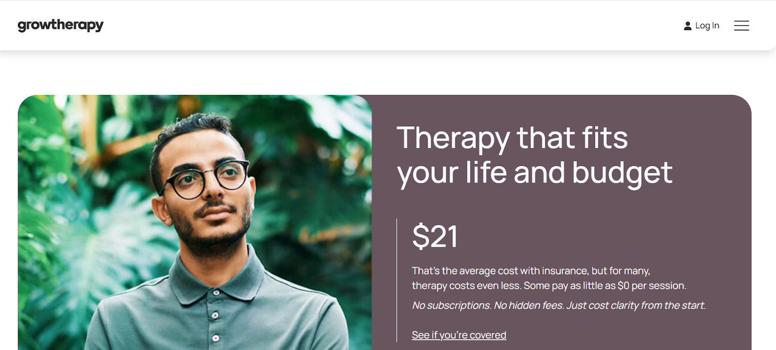 Grow Therapy is an online therapy platform designed to connect you with licensed counselors, therapists, and psychiatric providers for both virtual and in-person support. Grow partners with over 100+ insurance plans so that you can easily book with a clinician who takes your insurance, which makes things simpler. You can also quickly find a provider who specializes in your needs, thanks to their extensive national provider network with over 135 specialties. Grow offers convenient mental health care and aims to help clients use their insurance or private-pay options in a way that fits their budget.