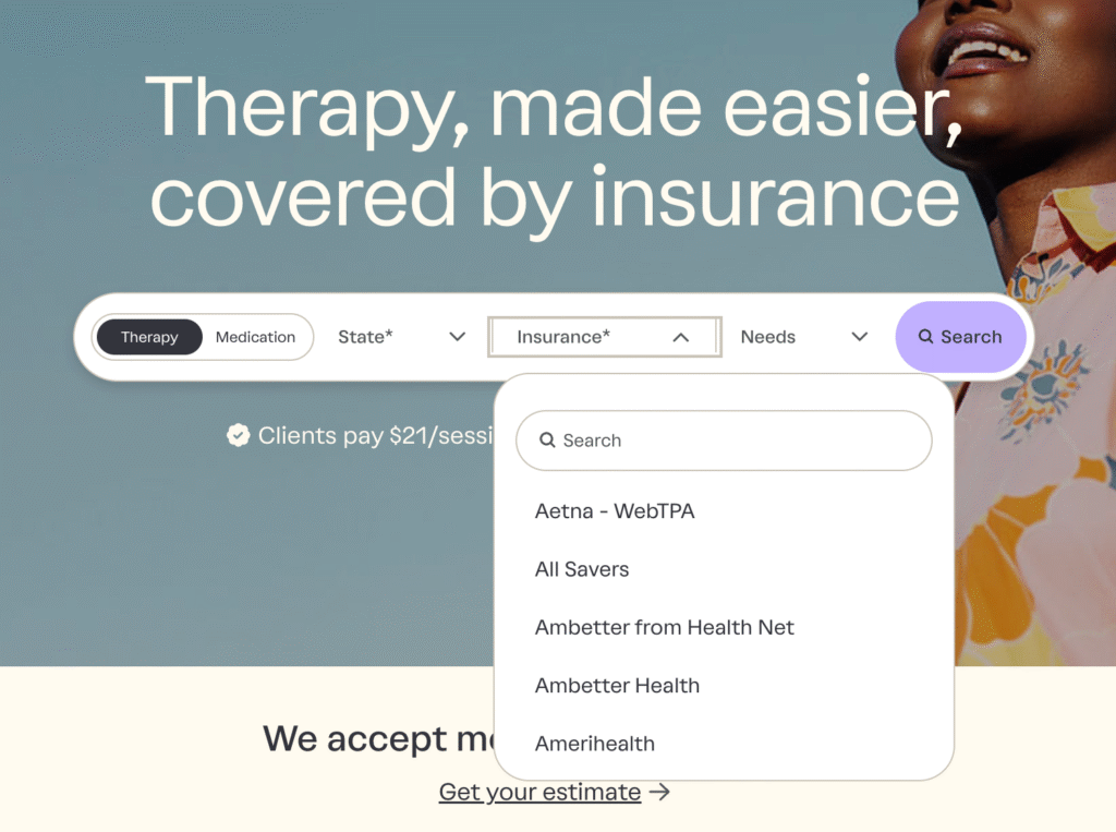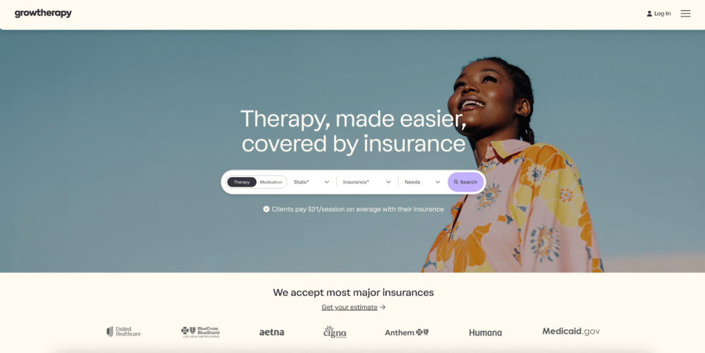 What stands out is Grow Therapy’s mission to make mental health care affordable and accessible. With average session costs around $21 after insurance coverage, which is lower than most online therapy platforms, Grow ensures that cost isn’t a barrier to care. The platform partners with more than 100 healthcare plans, including Medicare and Medicaid in select states, giving millions of individuals access to therapy through their insurance. For those without insurance, Grow also offers a cash-pay option per session, allowing clients to continue receiving care during challenging transitions without committing to expensive monthly subscriptions or losing access to vital mental health support.
